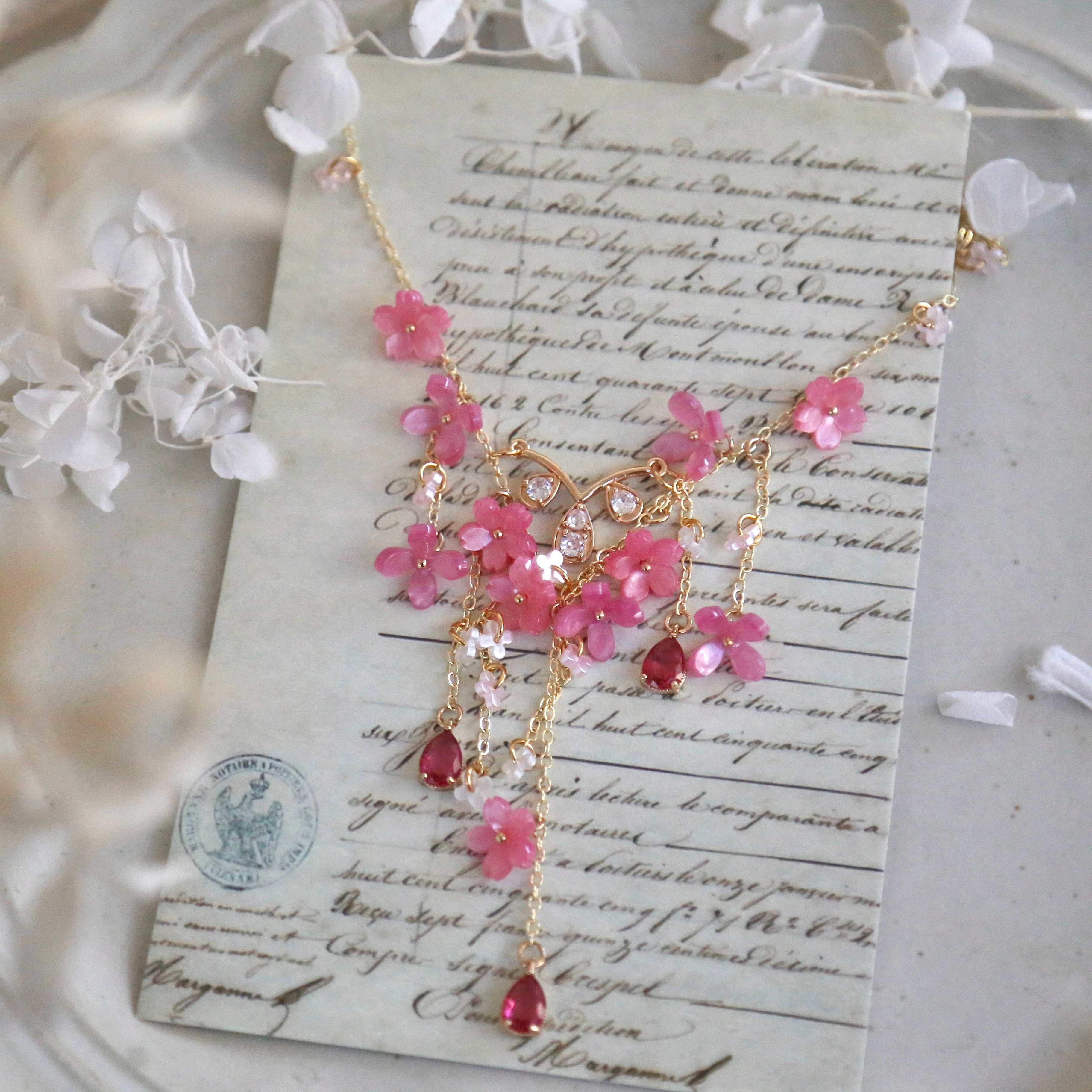 This delicate Cherry Blossom Necklace captures the beauty of spring! I paired it with red cat’s eye stones, giving it a soft yet elegant glow. The rich red hue makes it perfect for pairing with special dresses, adding a unique and sophisticated touch. ✨❤️