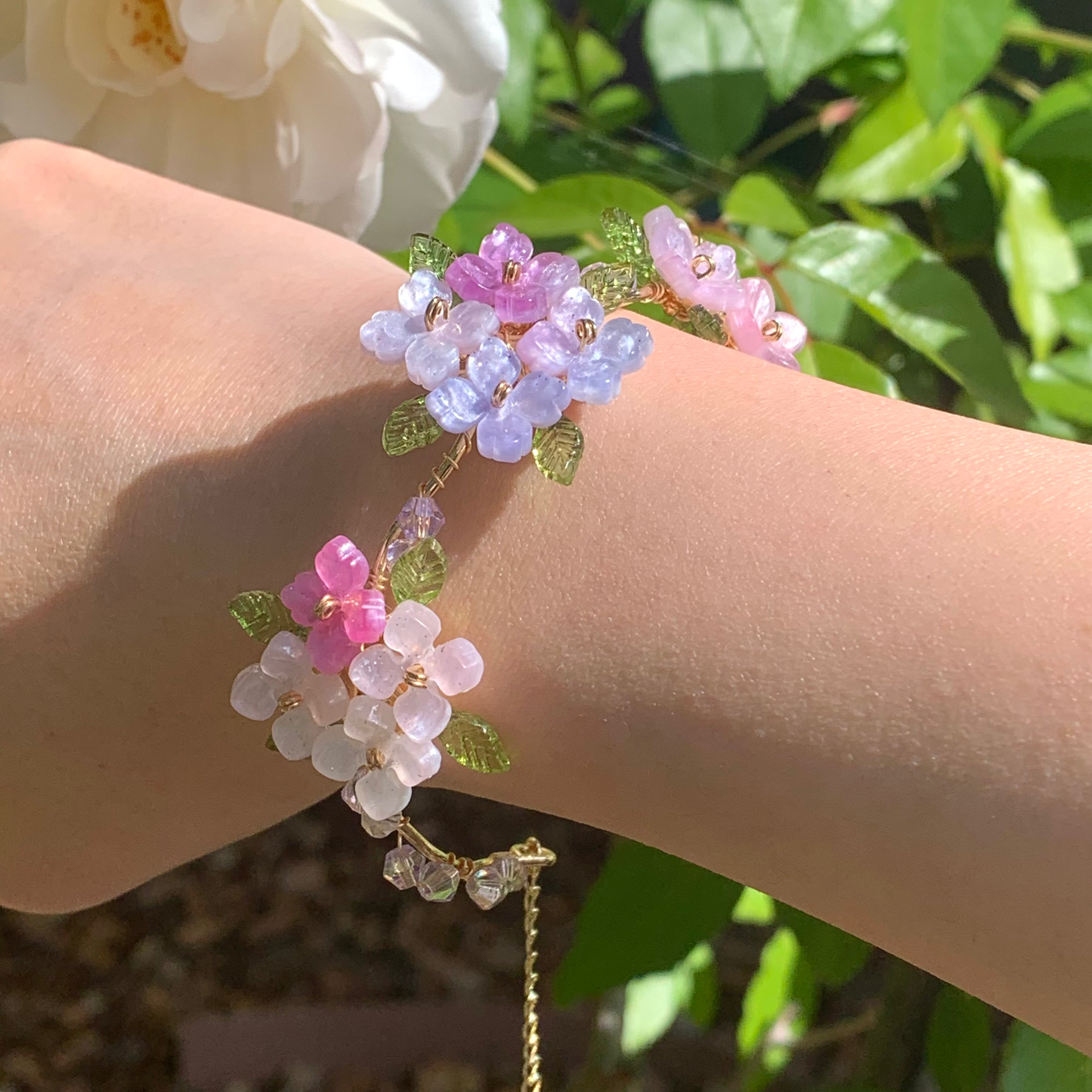 Let soft clusters of hydrangeas bloom gracefully on your wrist.