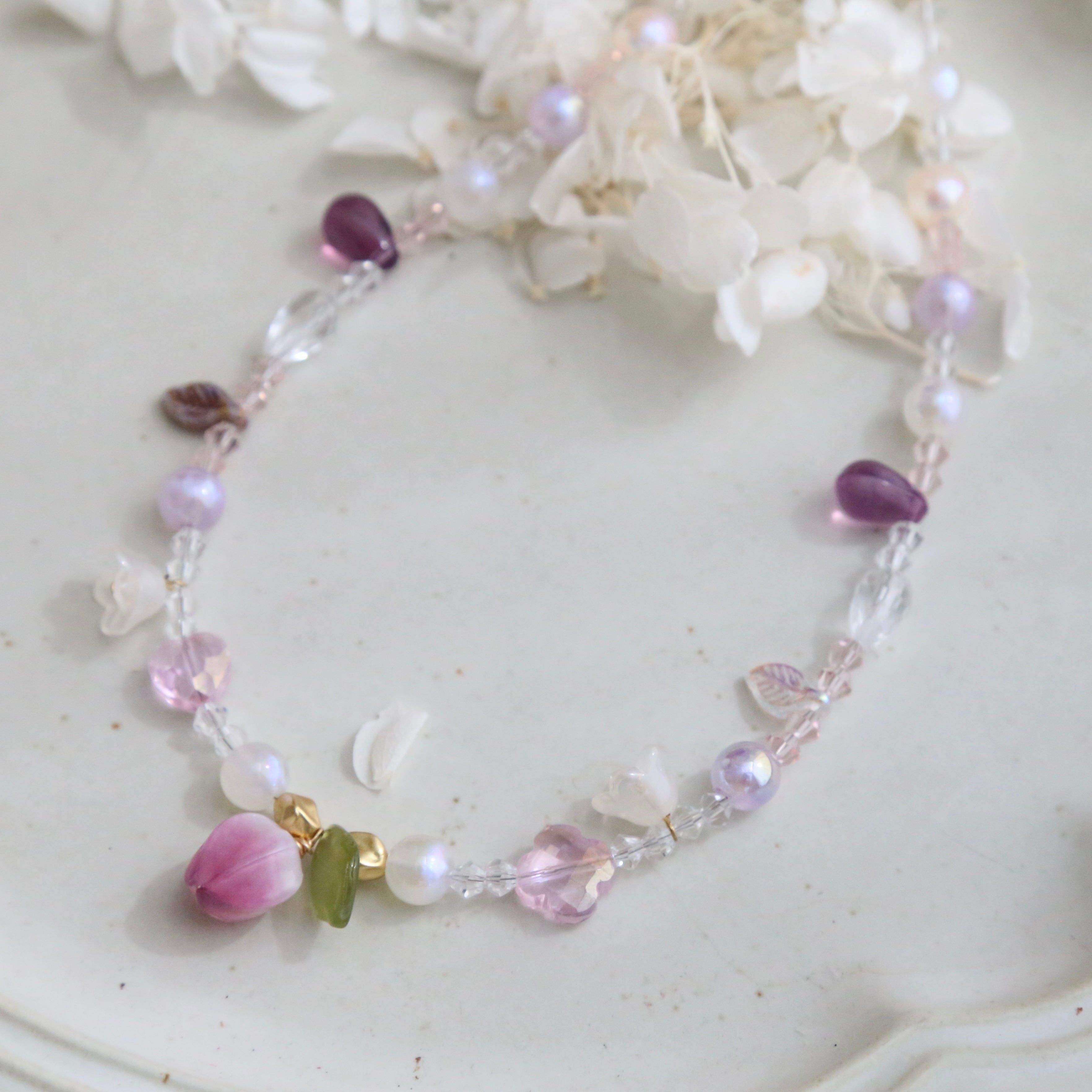 This charming piece combines an array of cute beads, sparkling crystals, and handcrafted wild berries made from shrink plastic, creating a whimsical and vibrant design. Perfect for expressing your unique style, this necklace is lightweight and easy to wear, making it a great accessory for everyday outfits or special occasions.